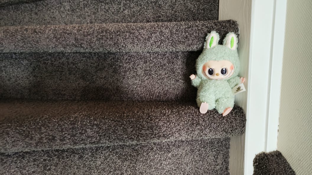 - De lafufu (zie foto, hoe ik eraan kom is ook een leuk verhaal, de gezichten van de heren nog leuker) Maar goed, de lafufu steeds op een andere plek in het huis zetten. En de grootste mop is dat niemand reageert. Nu ik dit schrijf begin ik daar weer om te grijnzen.